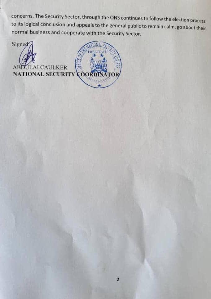 The Security Sector believes that such public pronouncements, as made by NEW and echoed by development partners, have the potential to incite undue tension in the country. It is worth noting that the recently conducted presidential election in Sierra Leone was overwhelmingly peaceful and has received widespread acclaim both domestically and internationally.