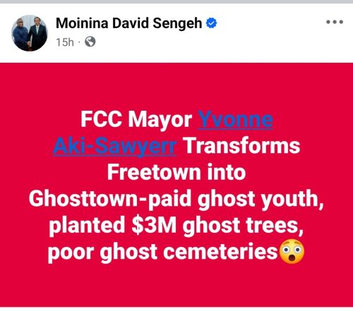 Mayor Yvonne Aki-Sawyerr has yet to issue a public response to the allegations. However, the accusations come at a time of heightened political tension over government’s proposed redistricting plans for Freetown, which the Mayor has openly opposed.