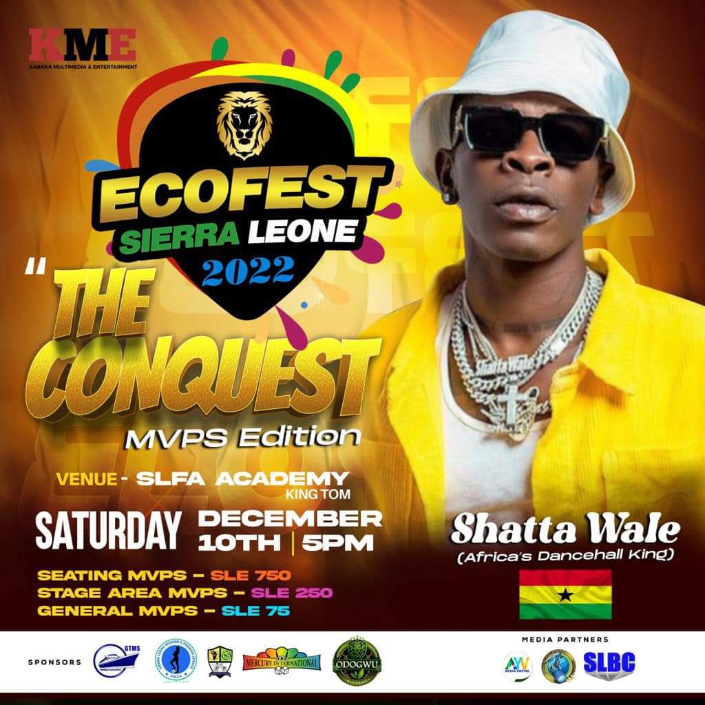His name rings like an anthem in households across the nations of the world. THE ONE DON!!! Nobody gets bigger or better than him when it comes to African dancehall. He is simply Shatta Wale the African dancehall king. Even Beyoncé agrees. Representing Ghana and starting his pre-Africa Nations tour, Shatta Wale makes ECO FEST SIERRA LEONE “The Conquest” MVPs EDITION his first port of call. The event holds on 10TH DECEMBER 2022 at the SLFA ACADEMY, King Tom.