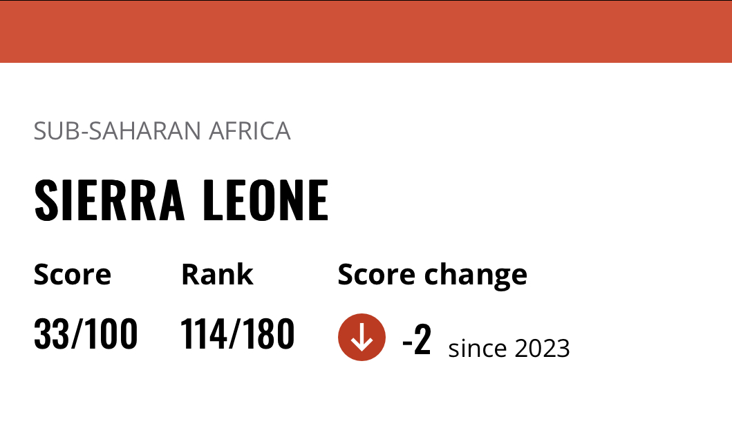 Sierra Leone’s fight against corruption has suffered a significant setback, as evidenced by its declining performance in global anti-corruption rankings.