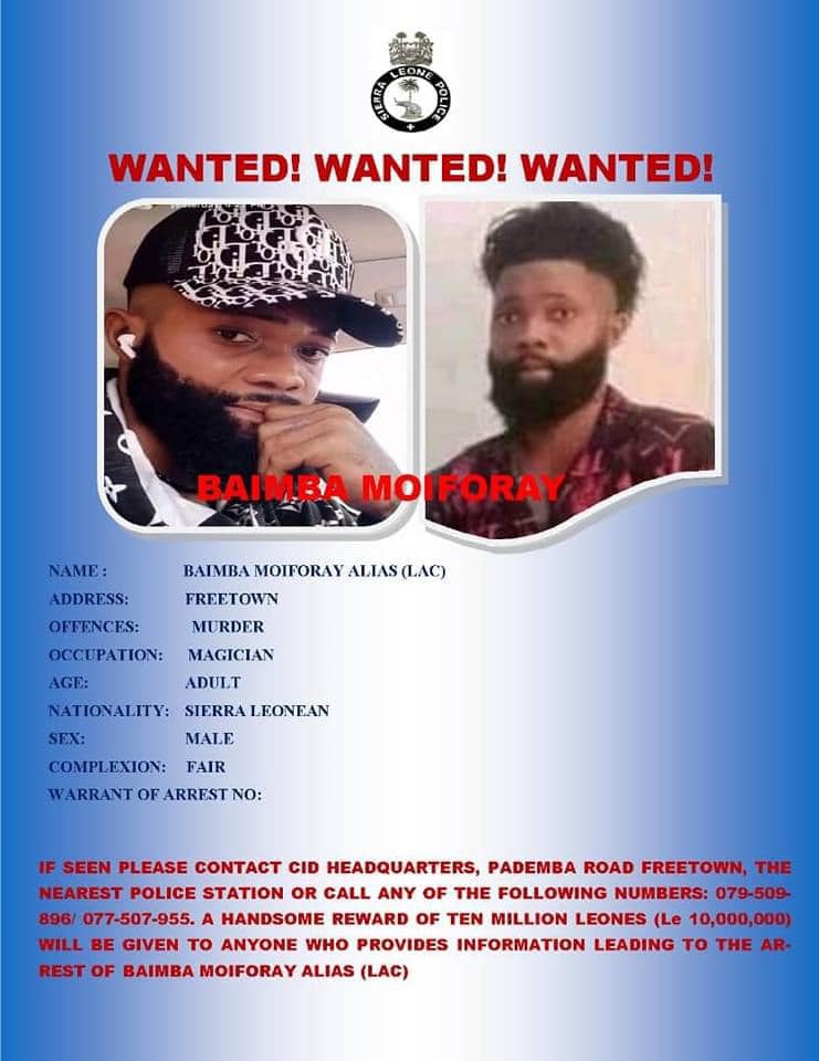 The Sierra Leone police has declared Baimba Moiforay popularly known as LAC wanted and Le10 Million reward has been declared for anyone that will capture the Magician or give information leading to his arrest.