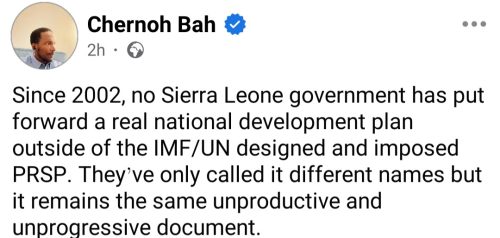 The concern raised in Bah’s post reflects a wider question many observers and citizens have asked about whether Sierra Leone’s development path is truly set by its own leaders or still shaped by conditions set by foreign institutions.