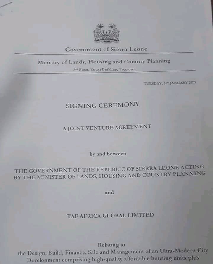 Part of the agreement is to construct 5,000 affordable homes that are to benefit millions of Sierra Leoneans constrained with better housing facilities.