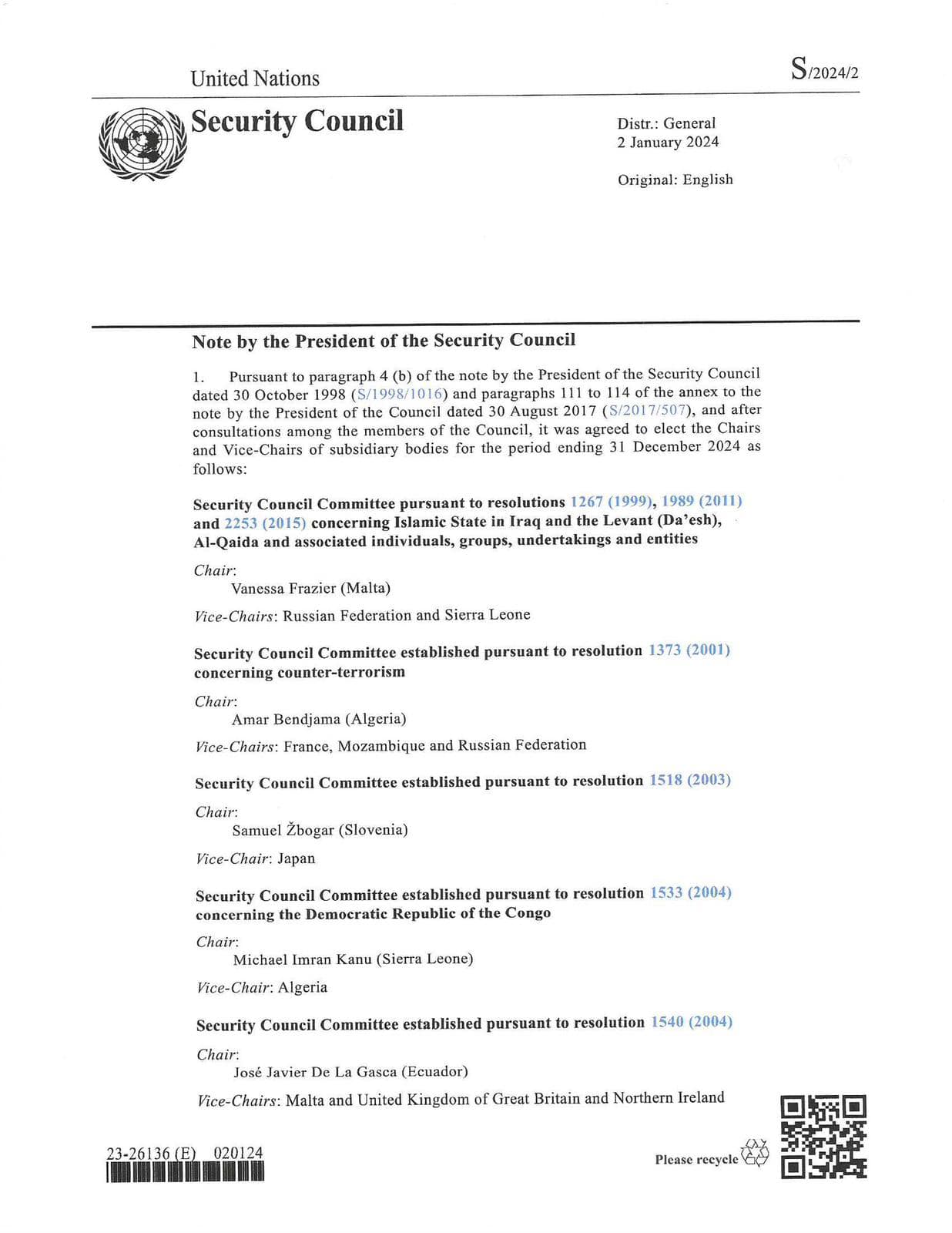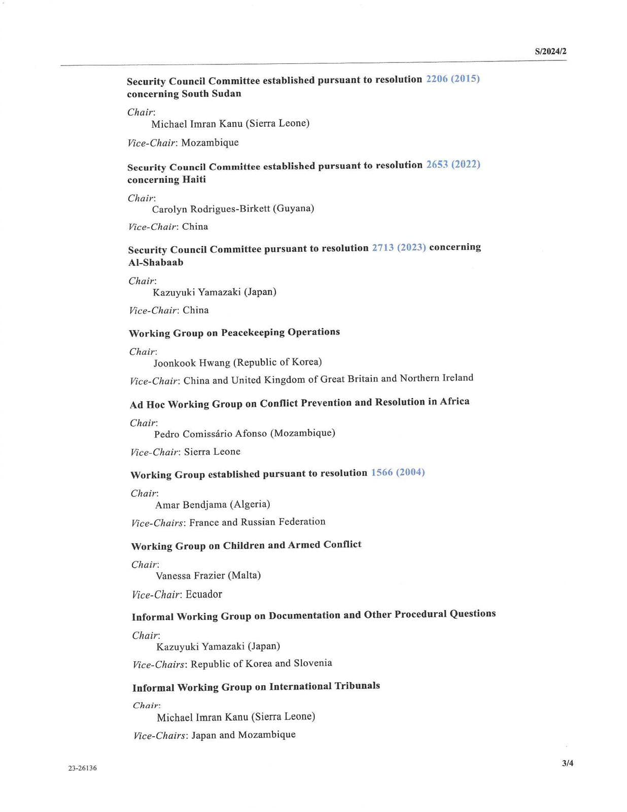 In the note presented by the Security Council President on the 2nd January 2024, Sierra Leone will take the helm of the Security Council Committee established under resolution 1533 (2004), mandated to monitor the implementation of a peace agreement in the DRC and address ongoing insecurity in the region.