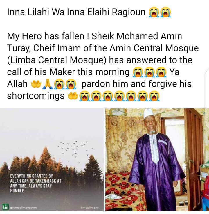 Another popular Sierra Leonean Chief Imam, Sheikh Mohamed Amin Turay is dead.