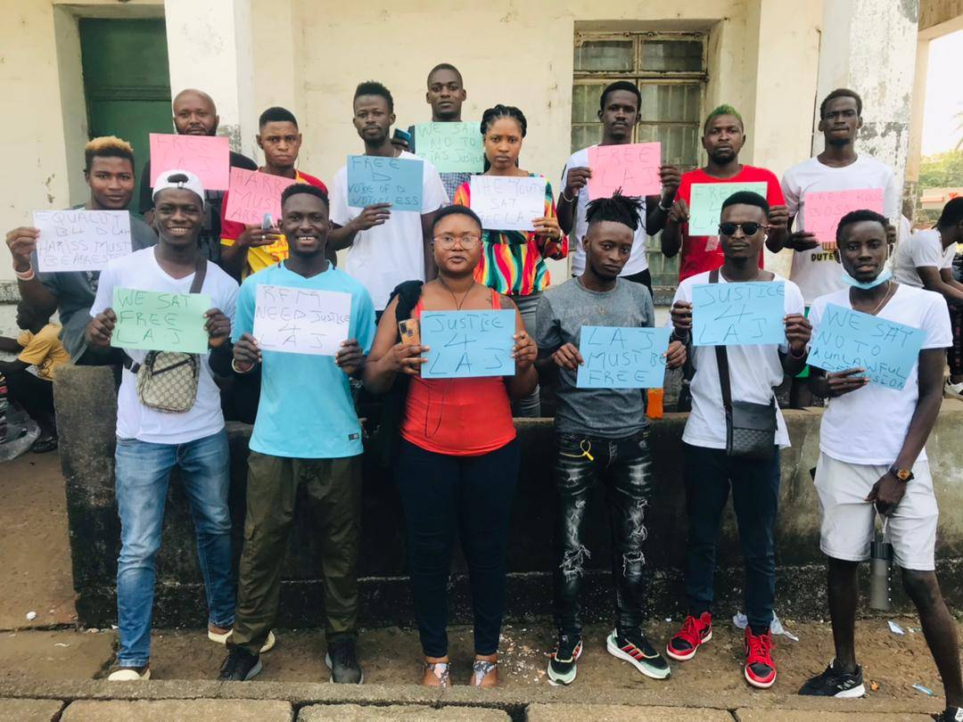 A group of Sierra Leoneans gathered outside the Criminal Investigation Department (CID) at Pademba Road with placard demanding the release of Alhaji Amadu Bah popularly known as Boss La.