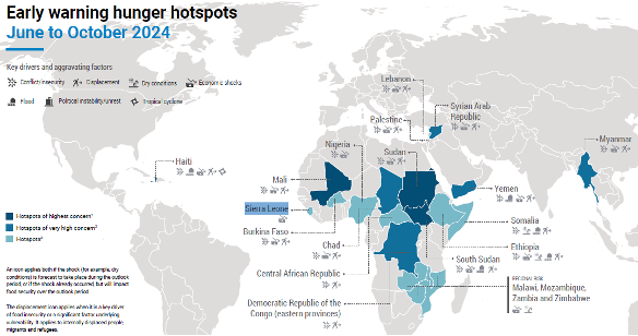 In Sierra Leone, macroeconomic challenges, compounded by high food prices and inflation rates, are major contributors to worsening food insecurity. The report highlights that annual food inflation reached a staggering 45 percent in February 2024, the highest in the region. This has resulted in substantial increases in the prices of staple foods like rice (up 33 percent for local and 38 percent for imported) and cassava (up to 122 percent year-on-year).