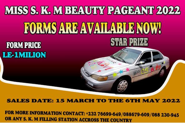 The company organizers would like its fans, the public and interested candidates for the pageant that, forms are now available at a cost of Le1,000,000 (One Million Leones). The Sales date of these forms will start on 15th March to the 6th April 2022.