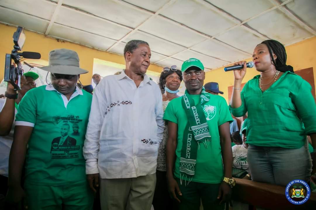Ahead of Saturday’s encounter in Koya, for which the coalition of APC and National Grand Coalition (NGC) is ganging up against the governing SLPP, a high-powered SLPP campaign team comprising the First Lady, Fatima Maaada Bio, Resident Minister Northwest, Alhahji Dr. Alpha Khan, Ambassador Alimamy Bangura, Yakunba Bio, Young Generation Leader, Ing. Francis Kallon, Ibrahim Sannoh, Chief Brima Keita, Alhaji Alpha Kallon joined thousands of SLPP supporters in Constituency 073 on Thursday to galvanize them into action and rally behind their party aspirant, Abdul K. Kanu.