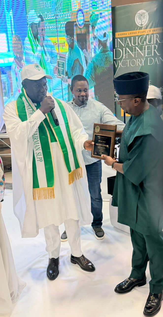 The award was presented at the Party’s Inaugural Dinner and Dance which was well-attended in Freetown, drawing senior party executives, grassroots leaders, elders, youth representatives, and invited guests from across the political spectrum. Party officials described the honour as a formal acknowledgment of Koroma’s pivotal role in strengthening internal governance structures and reinforcing party cohesion during critical moments in the SLPP’s history.