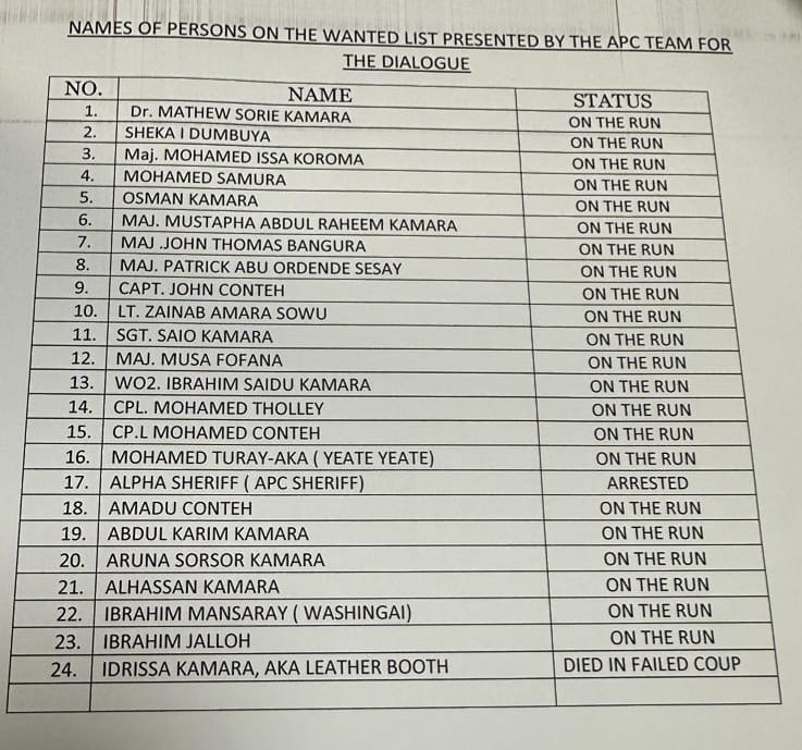 The list, including prominent figures such as Capt. John Conteh, Lt. Zainab Amara Sowu, and Sgt. Saio Kamara, indicated the diverse ranks and roles of those implicated. Shockingly, the roster included individuals both on the run and, notably, one who had reportedly died in the failed coup—adding a layer of complexity to the unfolding situation.