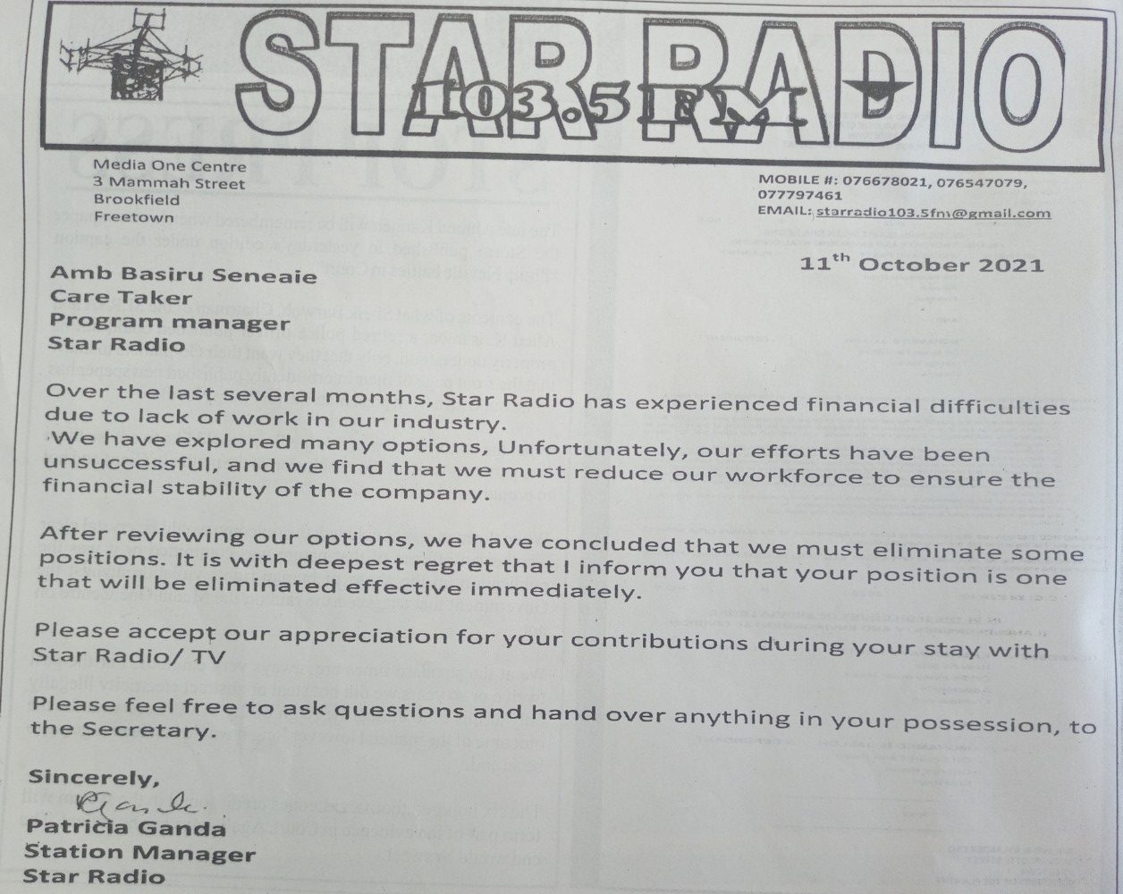 His sacked letter was published on Standard Times Newspaper which brought the attention of Sierra Leoneans on social media. Many Sierra Leoneans bashed at Media One Centre for publishing the sacked letter of the popular presenter. According to them, Media One Centre behaved unprofessionally for publishing the letter.