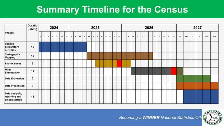 Statistics Sierra Leone (Stats SL) has provided an update on preparations for the 2026 Population and Housing Census, confirming a revised schedule following an independent technical review.