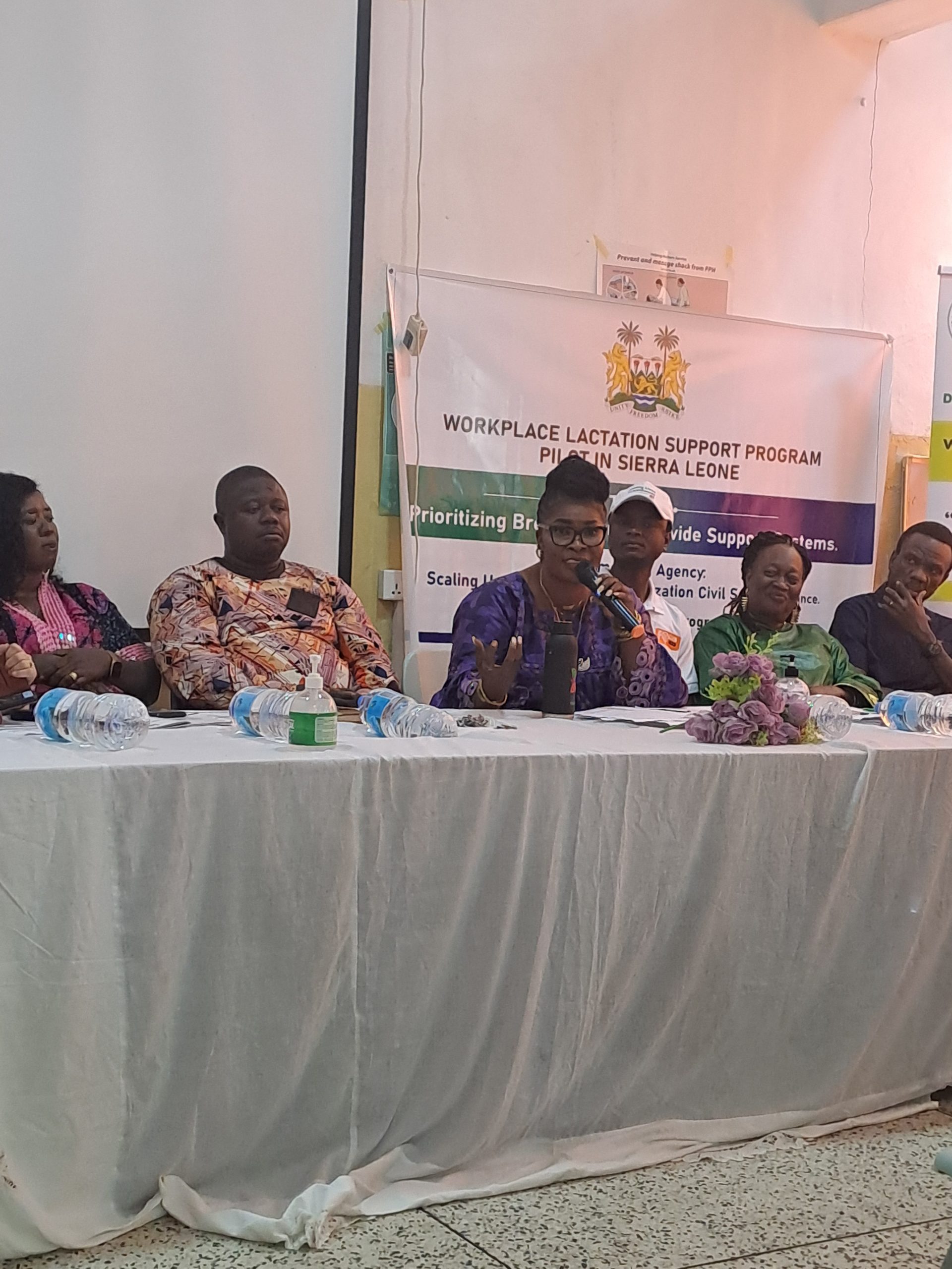 In her opening remarks, the Chairperson of the event Nenebah Jalloh National Coordinator Scalingup Nutrition office of the vice president,  described the initiative as a “practical and strategic investment in the health and productivity of women in the workforce,” particularly those navigating the dual roles of work and motherhood. She emphasized that the lactation program aligns with Sierra Leone’s broader national commitment to closing the gender and nutrition gaps.