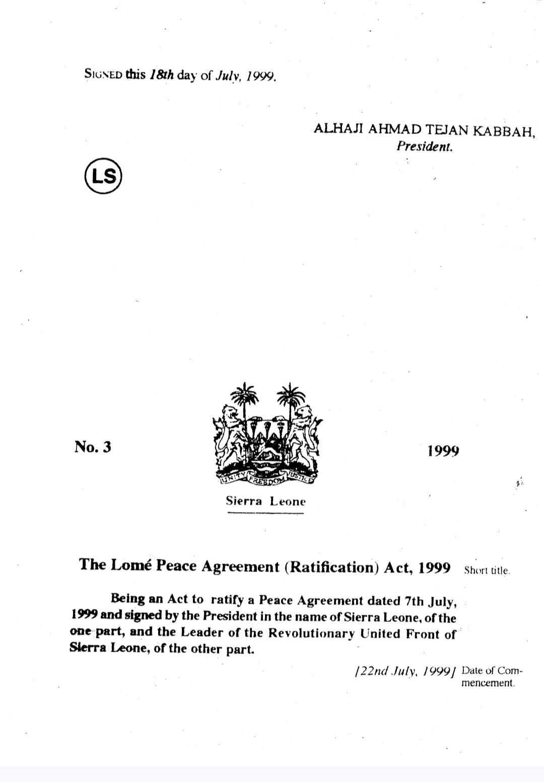 Drawing comparisons with the Lomé Peace Agreement, Blyden noted that the 1999 accord followed established constitutional procedures, including parliamentary ratification, which strengthened its enforceability and long-term legitimacy.