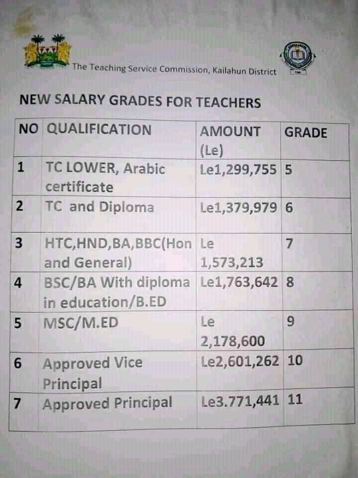 The Teaching Service Commission at Kailahun District has announced new salary grades for teachers in kailahun. This announcement was made by the Commission in a public notice.