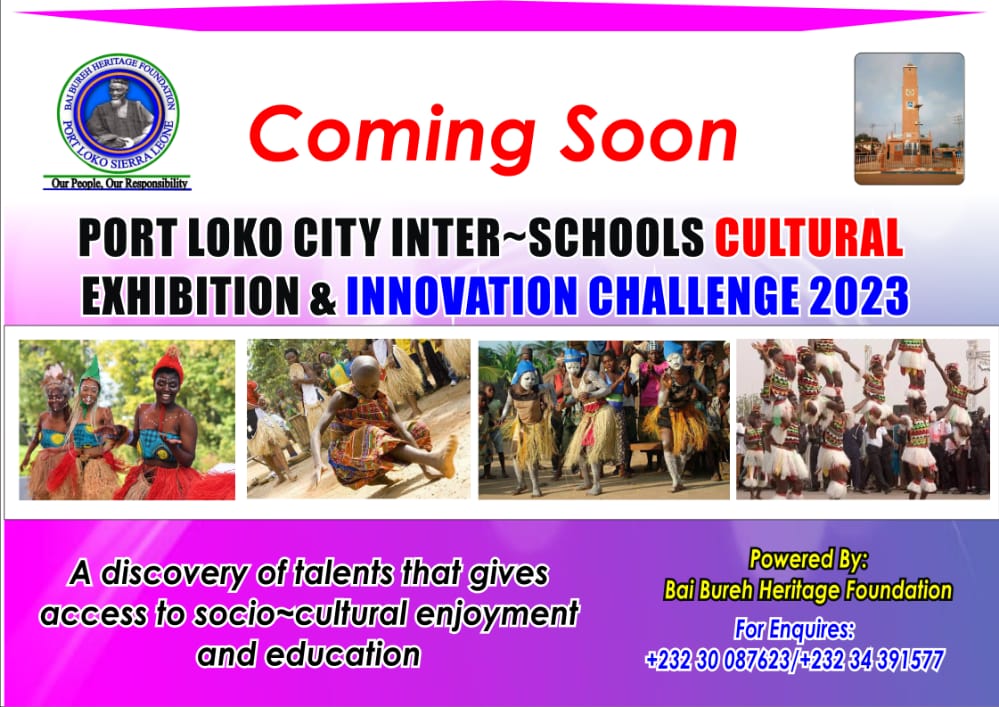 Early next year (2023), the Bai Bureh Foundation has planned to take the lead in organizing Inter-Schools Cultural Exhibition and Innovation Challenge among Secondary Schools in Port Loko City in partnership with the Ministry of Tourism and Cultural Affairs and the Ministry of Basic and Senior Secondary Education.