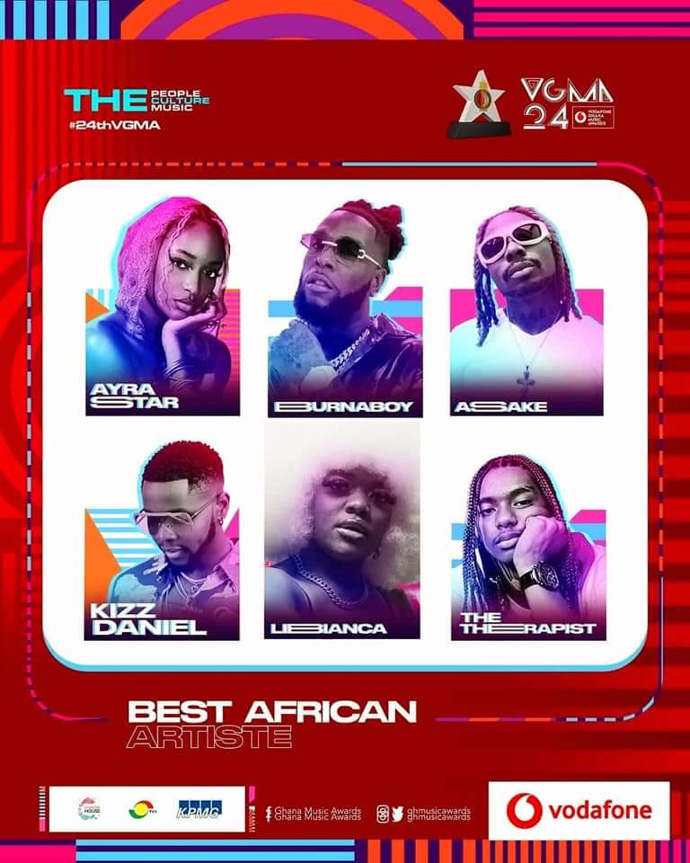 The Ghana Music Awards, currently known as the Vodafone Ghana Music Awards (VGMAs) for sponsorship reasons, is an annual music awards event in Ghana established in 1999 by a local event organizer and planner company known as CharterHouse to originally and primarily celebrate the “outstanding contributions of Ghanaian musicians to the growth and expansion of its associated industry.
