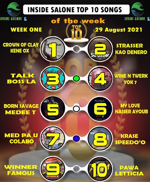 “Here is a list of Inside Salone top 10 songs of the week chart according to the vote. Congratulations 🇸🇱
