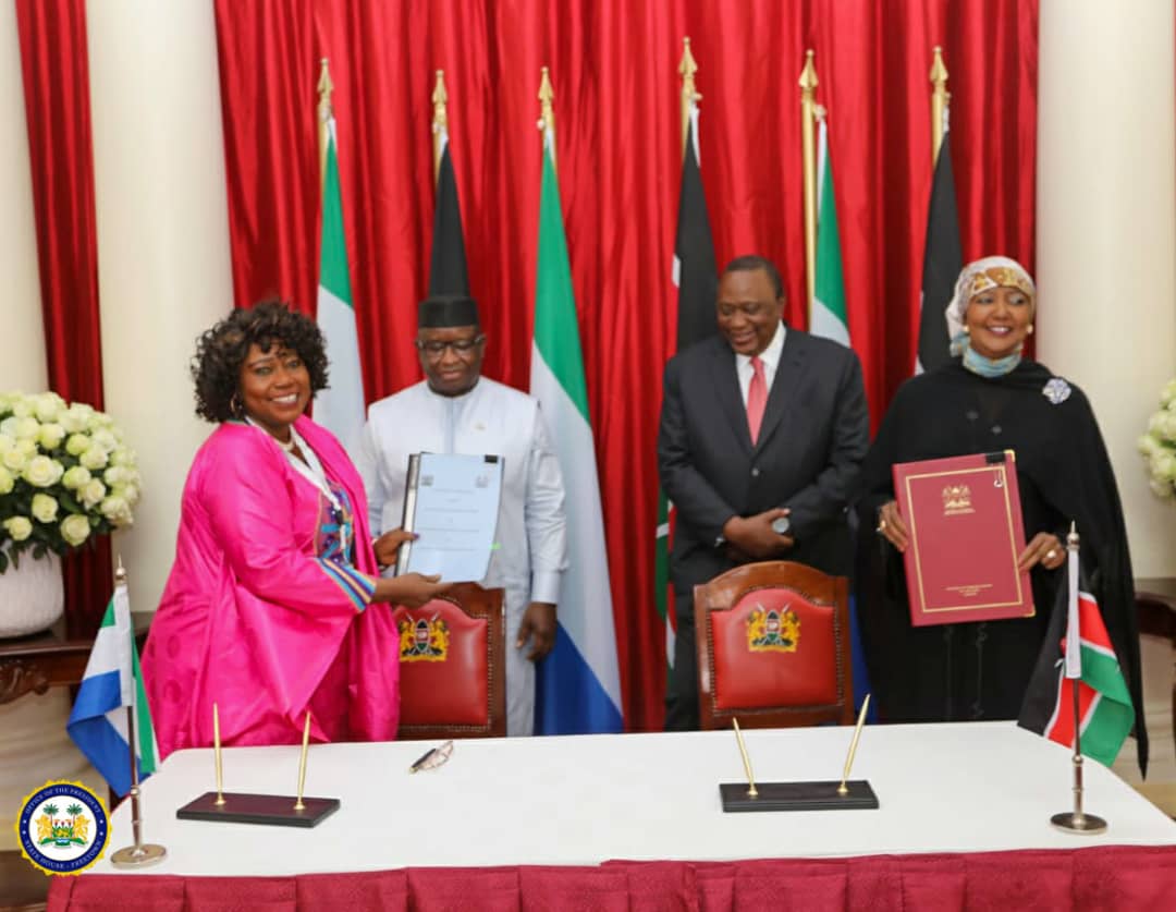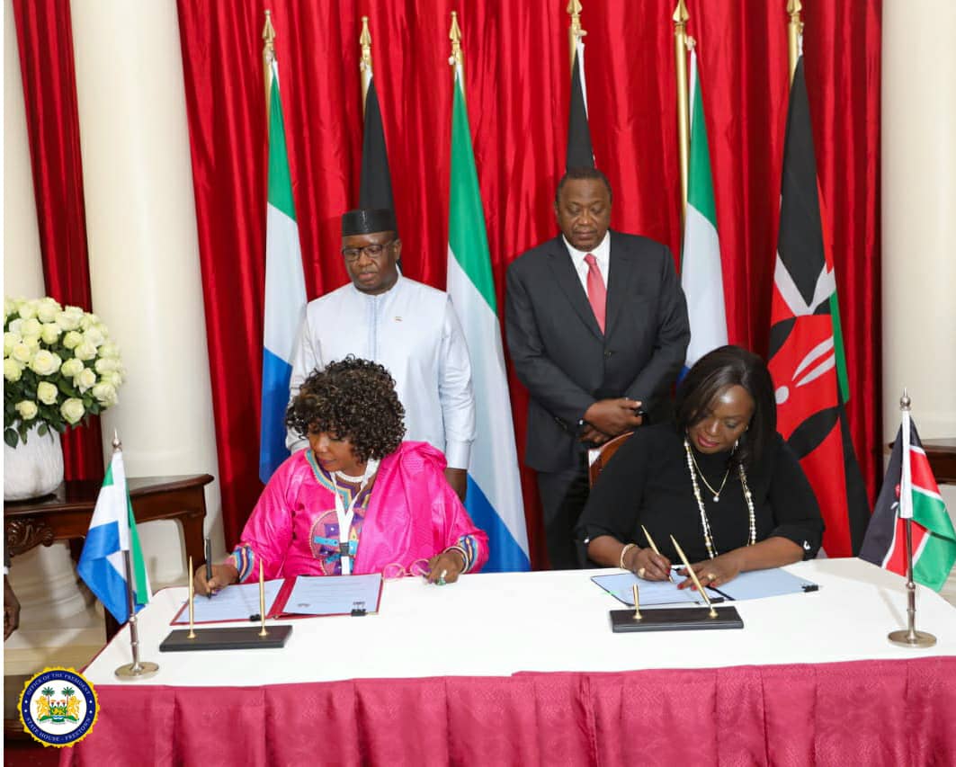 The President of Kenya, Uhuru Kenyetta and the President of the Republic of Sierra Leone, Brig. Rtd. Dr. Julius Maada Bio and a host of government ministers from the two countries were in attendance. The signing of the 7 memoranda of understanding aimed at fostering and strengthening the long standing bilateral relationship between the two countries.