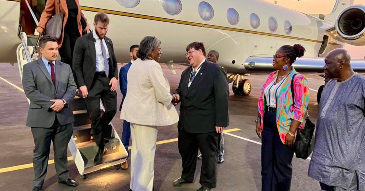 In a tweet, Ambassador Thomas-Greenfield expressed her arrival, stating, “Wheels down in Freetown, Sierra Leone. Over the next two days, I’ll have the chance to meet with civil society, young leaders, and government officials. Follow along!”