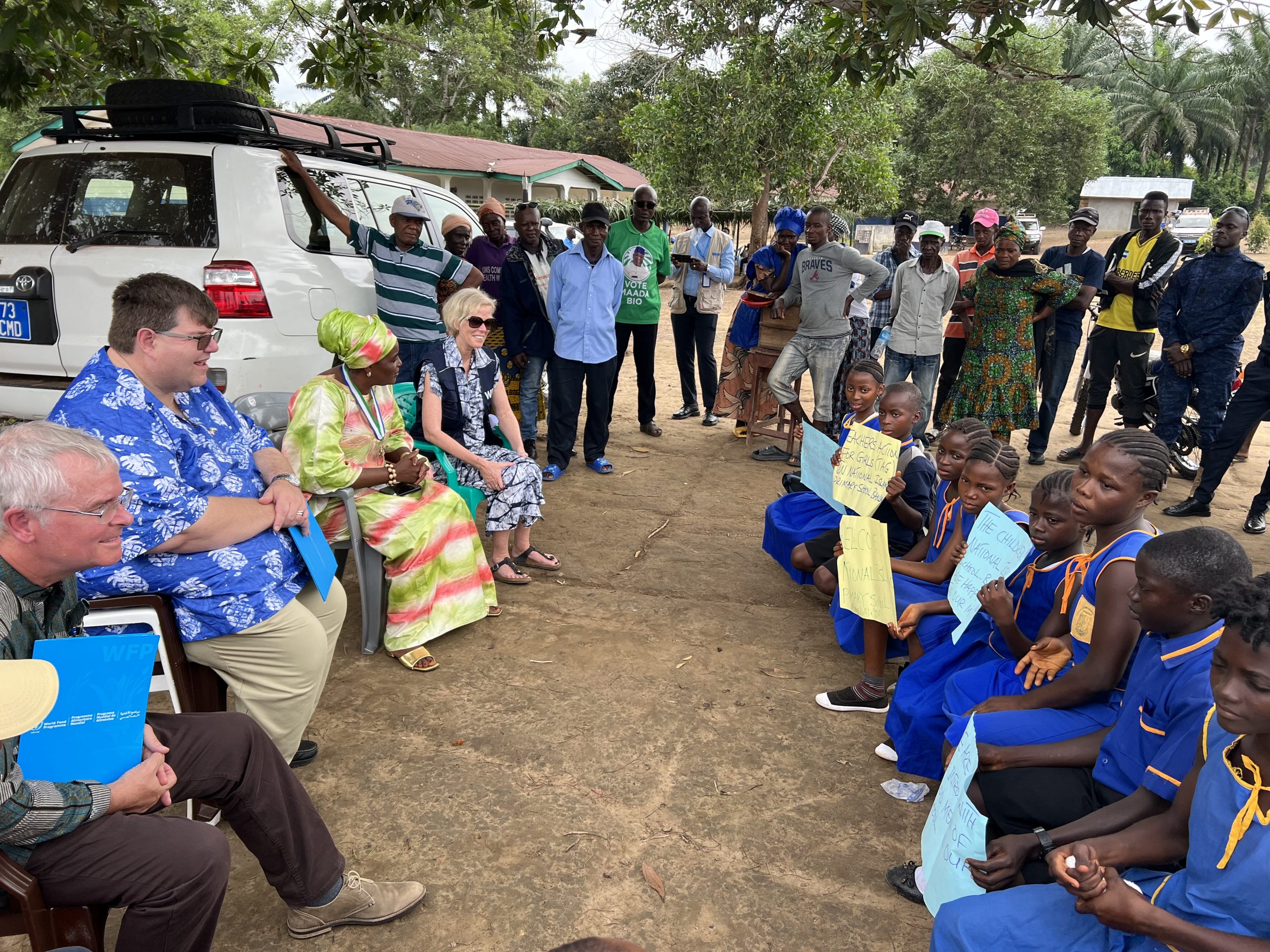 Ambassador Hunt engaged with smallholder farmers from the Gbotima Farmers’ Association in Bandawor town to delve into the ongoing efforts to achieve food security. He also visited the National Islamic Primary School in the same town to witness the school feeding program in action. Over 69,700 children, 52% of whom are girls, in 328 schools across Kenema district benefit from a daily hot meal.