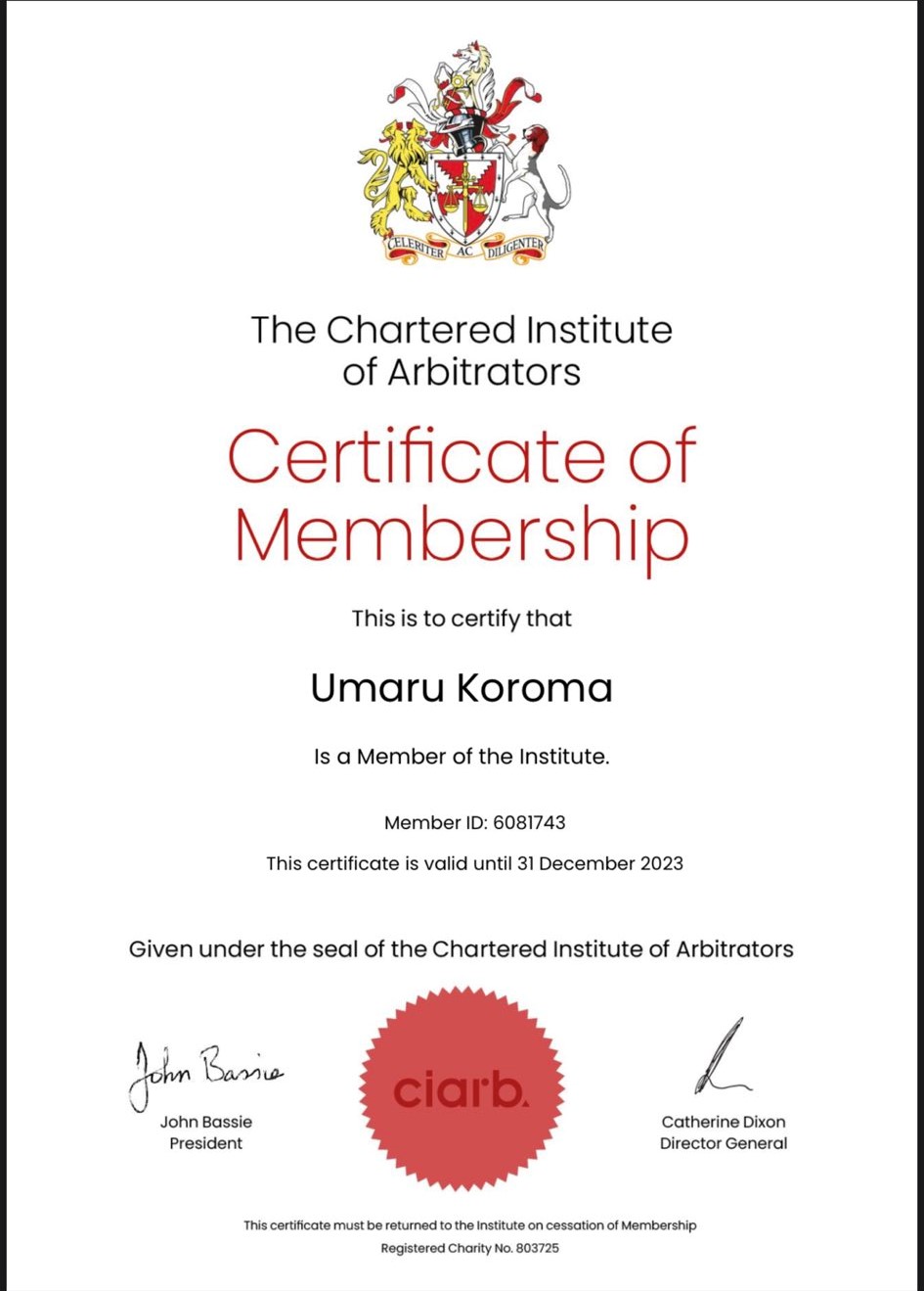 Umaru Napoleon Koroma, Sierra Leone’s Deputy Minister of Mines and the national secretary general of the ruling Sierra Leone People’s Party (SLPP), recently announced his induction into the Chartered Institute of Arbitrators.