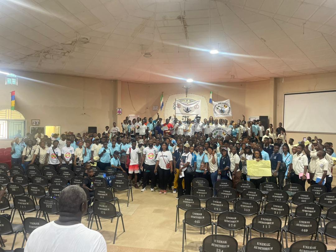 The campaign kicked off with a symbolic procession through the streets of Makeni. Staff and students, dressed in uniform Unimak T-shirts, marched while chanting anti-drug slogans and carrying placards. A separate group used a sound system to educate the public about the dangers of drug abuse.
