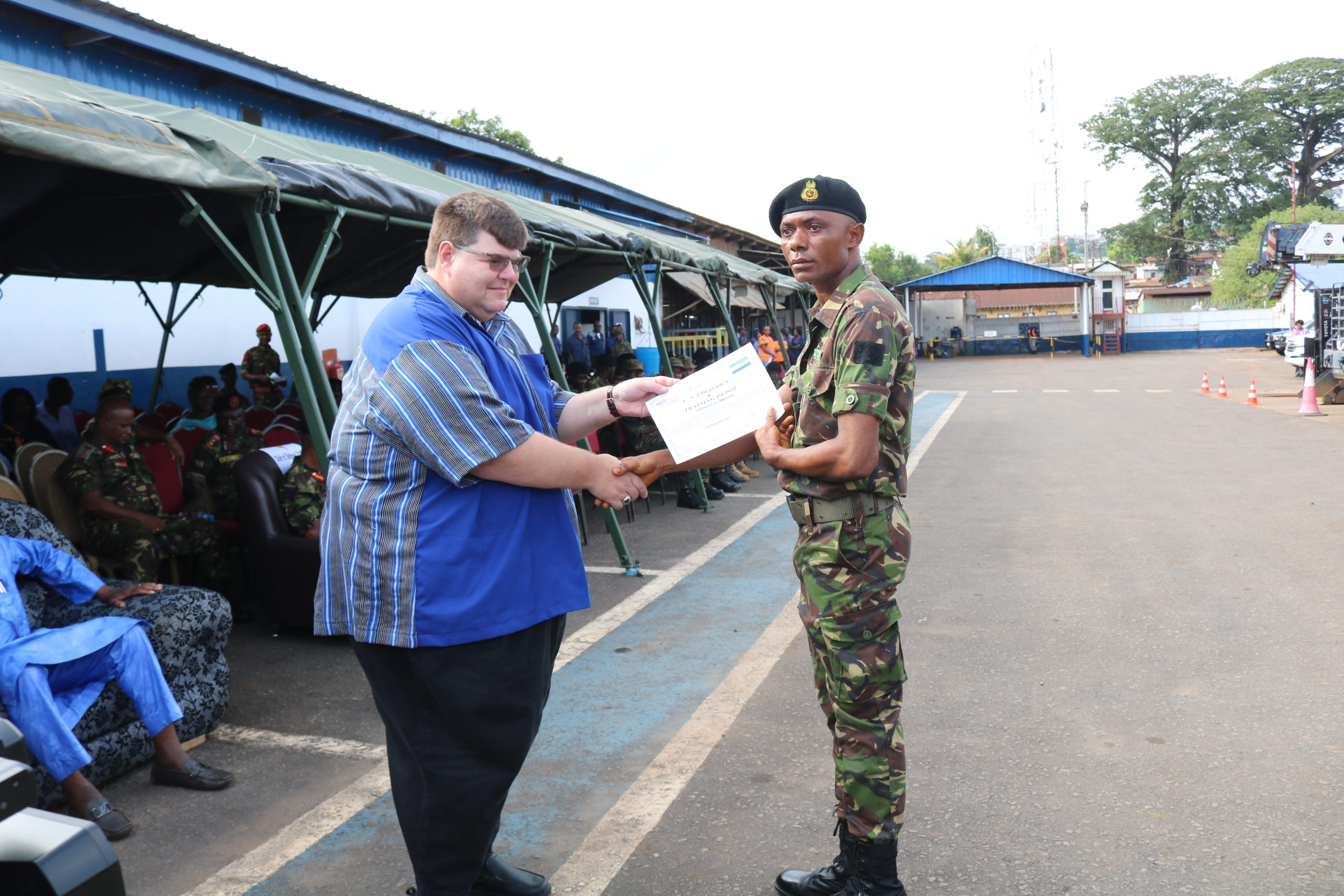 U.S. Ambassador Bryan Hunt celebrated the soldiers’ accomplishments with a graduation ceremony at the Triple Canopy location in Freetown.