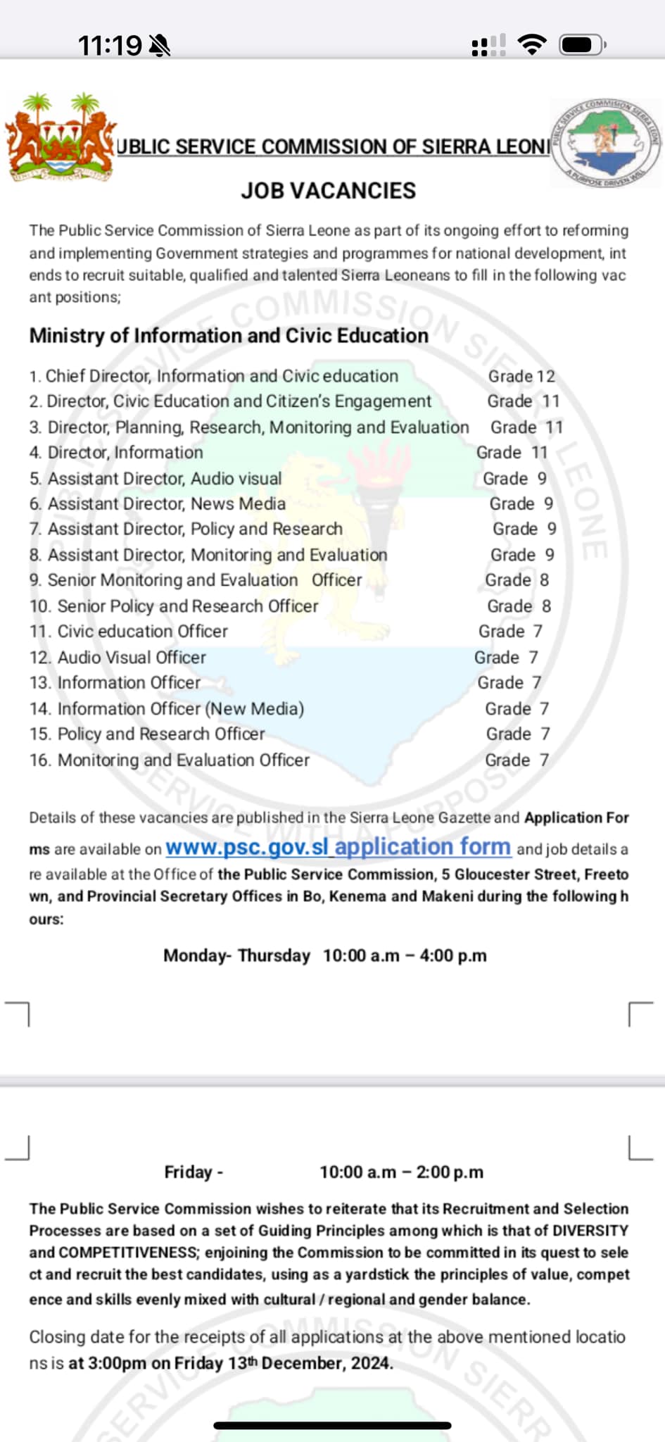 The Ministry of Information and Civic Education has announced a major recruitment drive, following months of strategic work and approval to fully constitute its directorates. Under the leadership of His Excellency President Julius Maada Bio, the Ministry has transformed from a structure with no fully functioning teams into one that is poised for even greater impact.