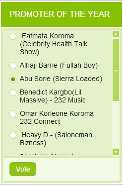 Help us win by Voting – “Abu Sorie (Sierra Loaded)” in the ‘Promoter Of The year’ category.