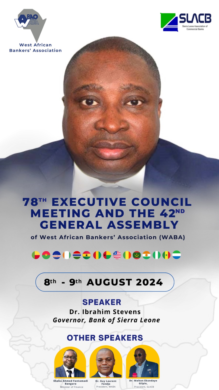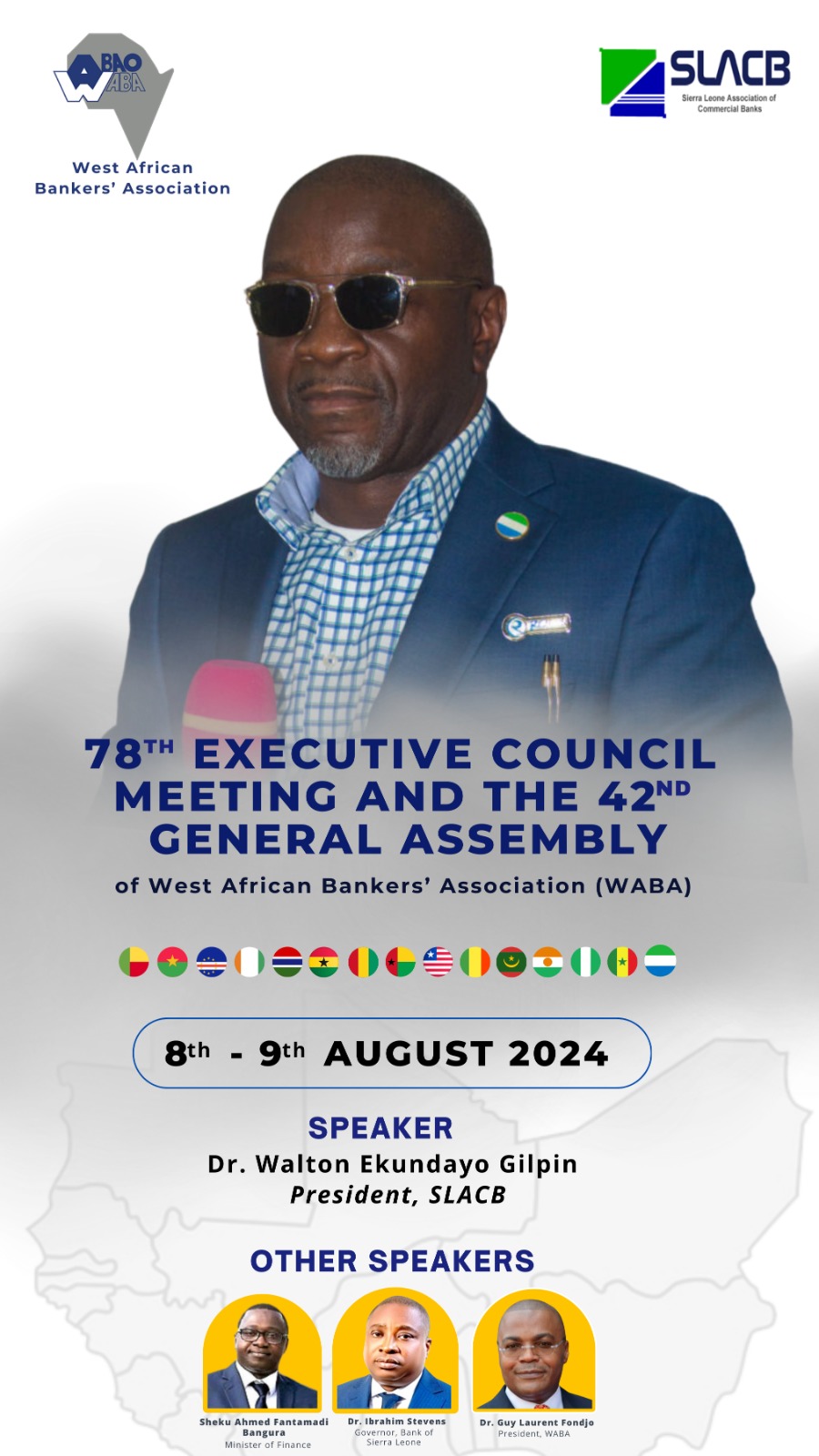 The West African Bankers’ Association (WABA) will organize its upcoming 78th Executive Council Meeting and 42nd General Assembly, hosted by the Sierra Leone Association of Commercial Banks (SLACB) in Freetown, Sierra Leone, from August 8th-9th, 2024, at the Freetown International Conference Hall.