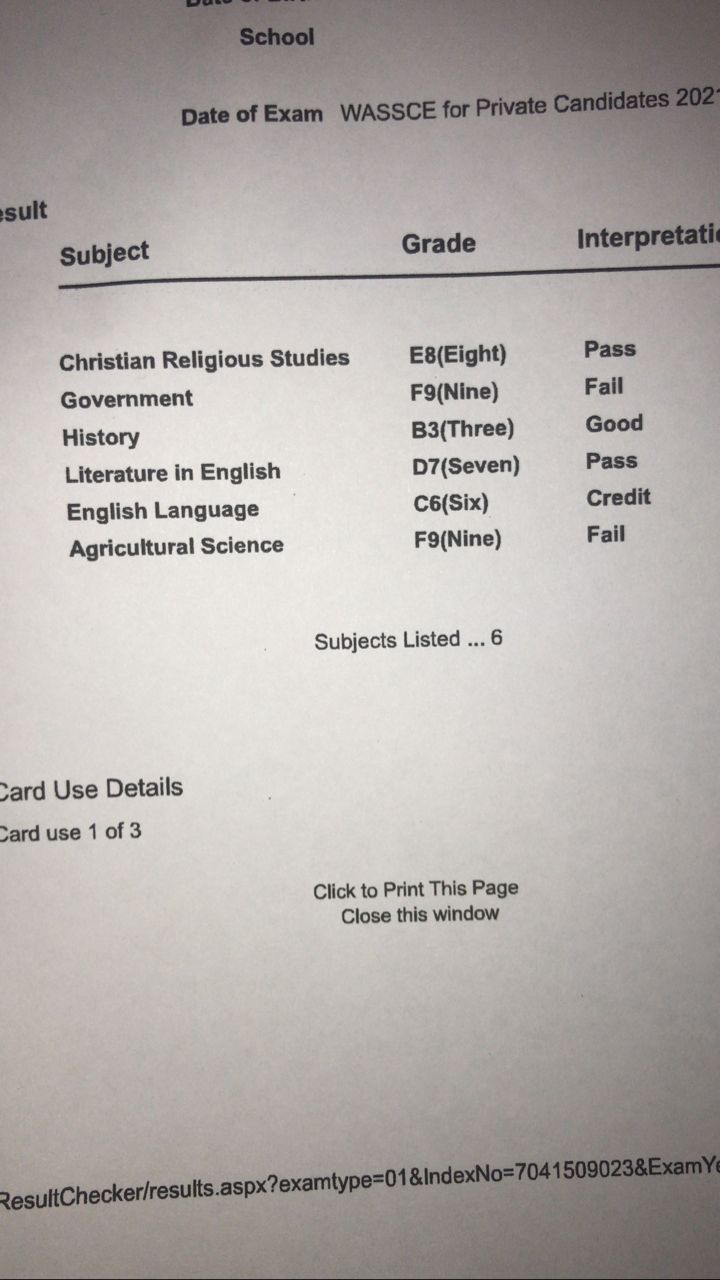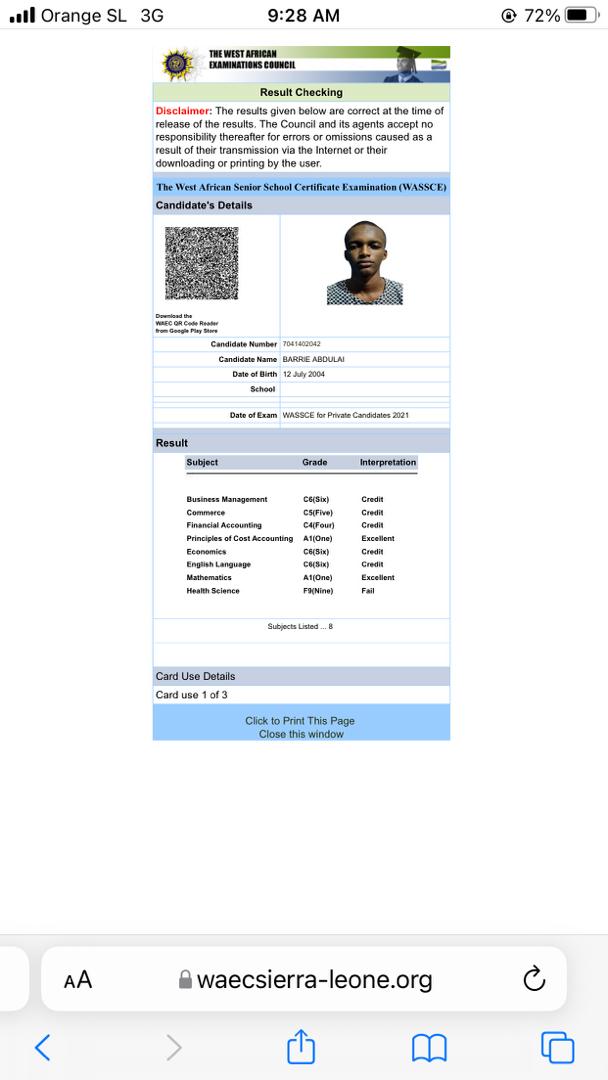 The West African Examination Council in Sierra Leone has released the West African Senior Secondary Certificate Examination Result for the 2021 private candidates. There have not been formal announcement yet but this medium got the information from the few students who have already used a scratch card and printed out their results.