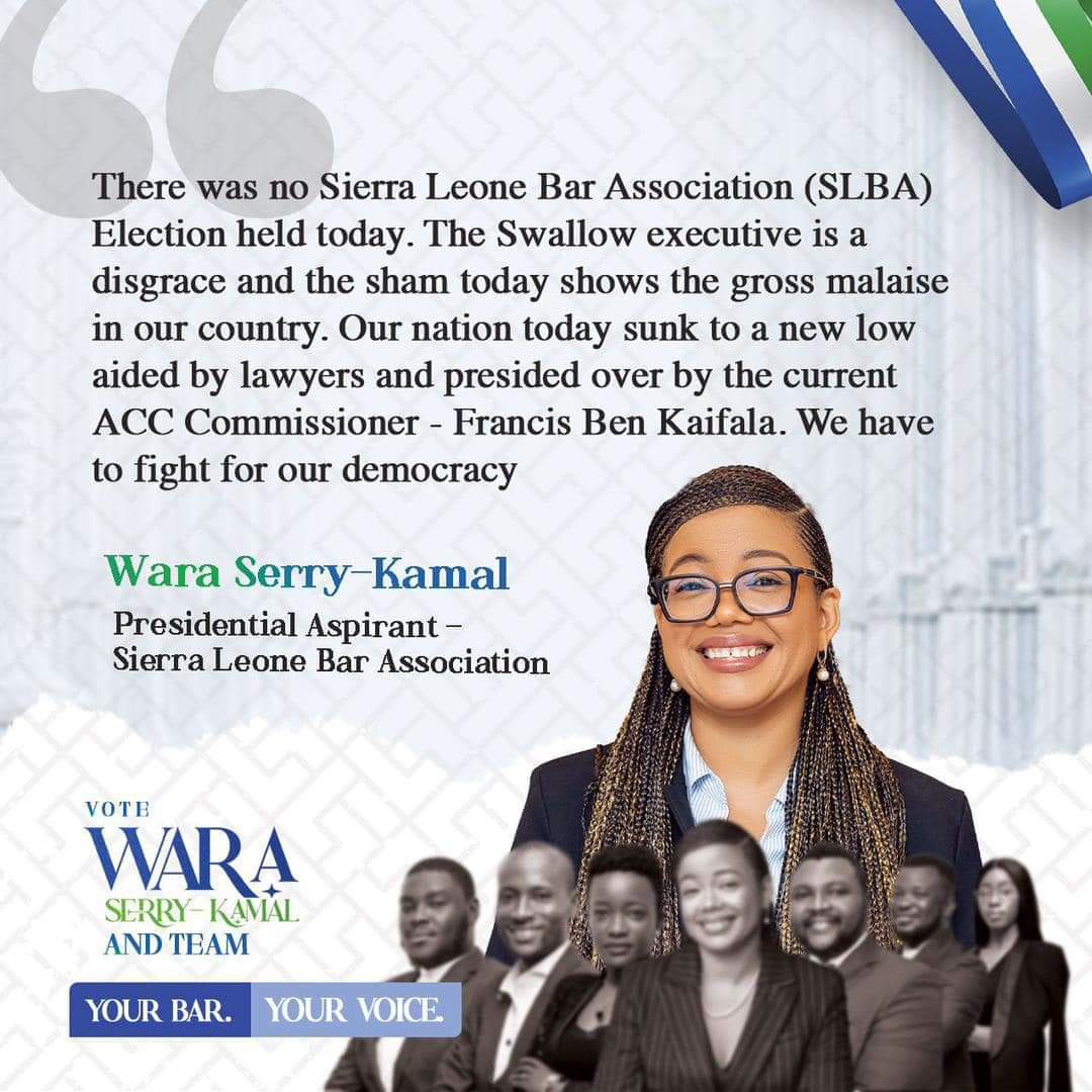 Barrister & Solicitor of the High Court of Sierra Leone Wara Serry-Kamal has denounced the 2024 Sierra Leone Bar Assembly Elections held in Kenema on Sunday 18th May 2024.