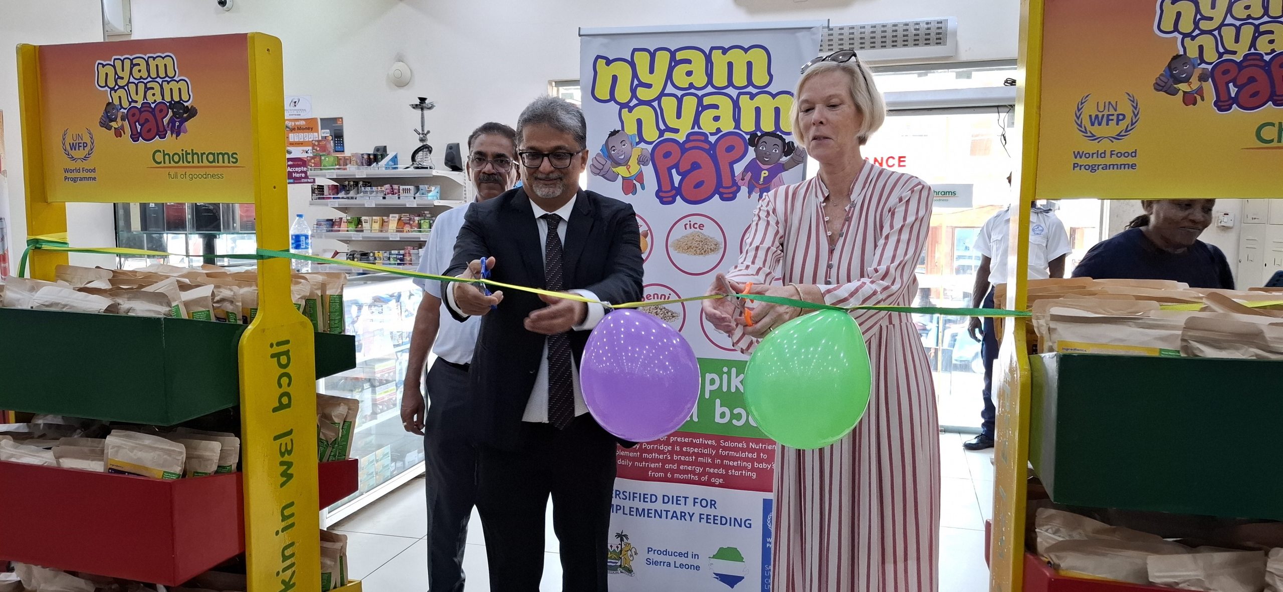 In an exciting collaboration aimed at addressing child nutrition, the World Food Programme (WFP), the Ministry of Health and Sanitation, and Choithrams Sierra Leone have officially launched Nyam Nyam Pap promotion in Freetown, an affordable and fortified complementary food for children under two years old.