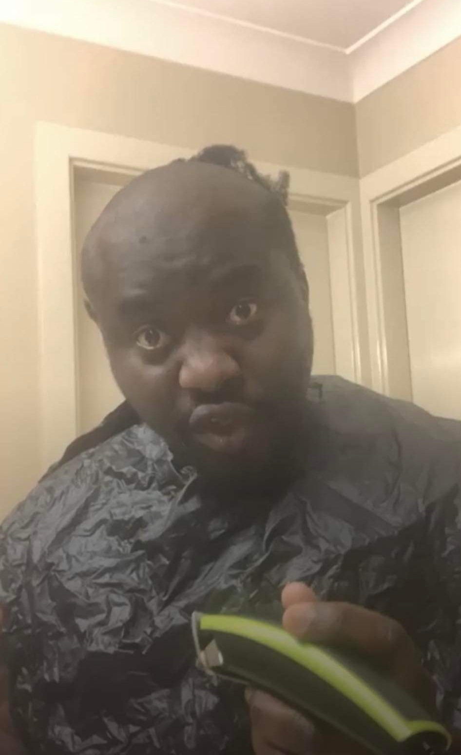 Earlier today the fake degree crusader took to Facebook with a hair clipper which he used to shave his hair.