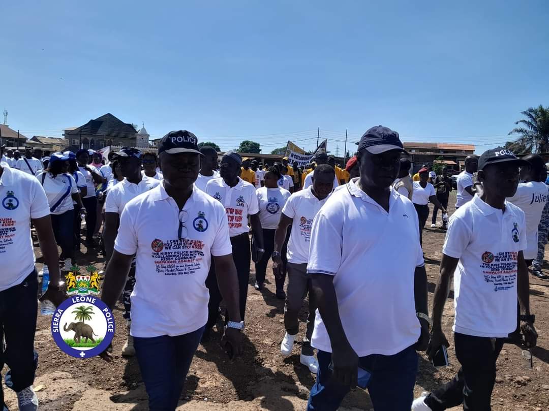 The awareness campaign, spearheaded by the Local Unit Commander of the Kissy Police Division, was conducted in collaboration with the Local Policing Partnership Board (LPPB), Area Policing Partnership Committees (APPCs), Motor Drivers’ Union, students, and other community members.