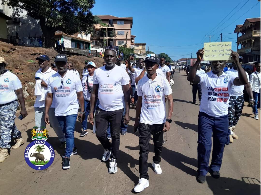 On Saturday, May 18, 2024, the Inspector General of the Sierra Leone Police Force, Mr. William Fayia Sellu, participated in a float parade and campaign organized by the Kissy Police Division aimed at combating the rising issue of Kush consumption and substance abuse.