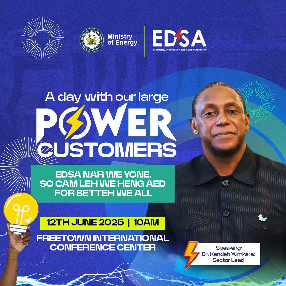 Dr. Kandeh Yumkella, Energy Sector Lead, emphasized the need for inclusivity and collaboration for energy reforms during a crucial meeting with the Electricity Distribution and Supply Authority (EDSA) and major power consumers.