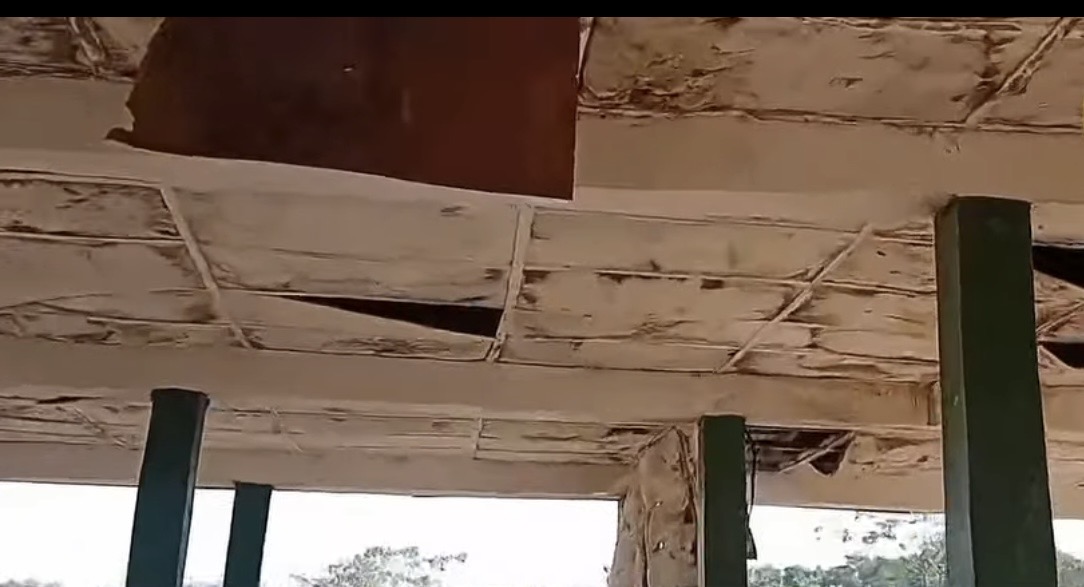 The structure, which has long served as a central meeting point for public events, is now in a worrying state of neglect. Observers describe a facility that is gradually collapsing, with damaged roofing sheets allowing rainwater to flood the seating area during downpours. The seating arrangement has also become unsafe, with broken and unstable benches, while visible cracks along the walls and peeling paint highlight years of poor maintenance.