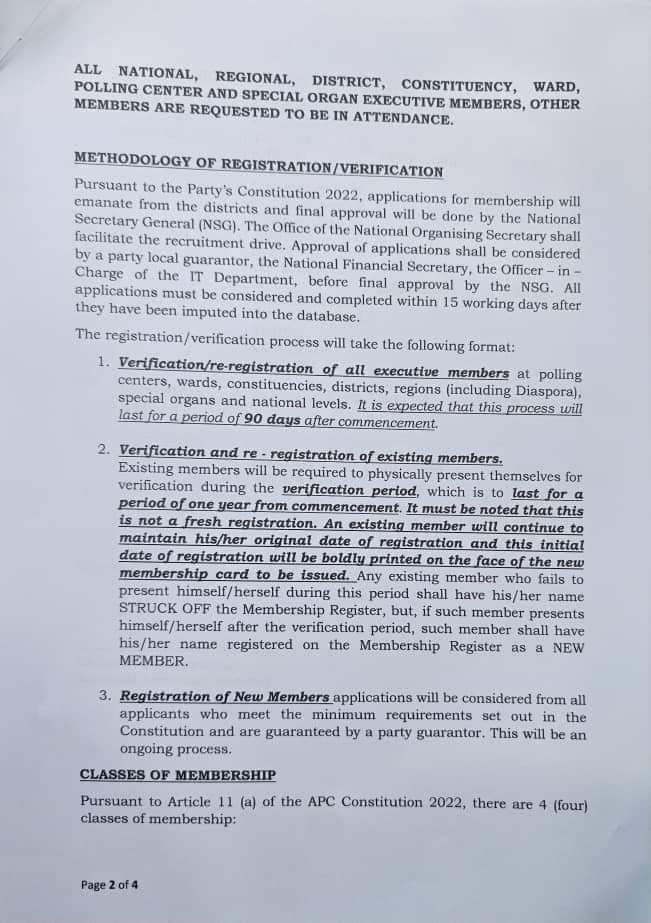 The APC is urging all party members to participate in the verification process and to encourage potential new members to join the party.
