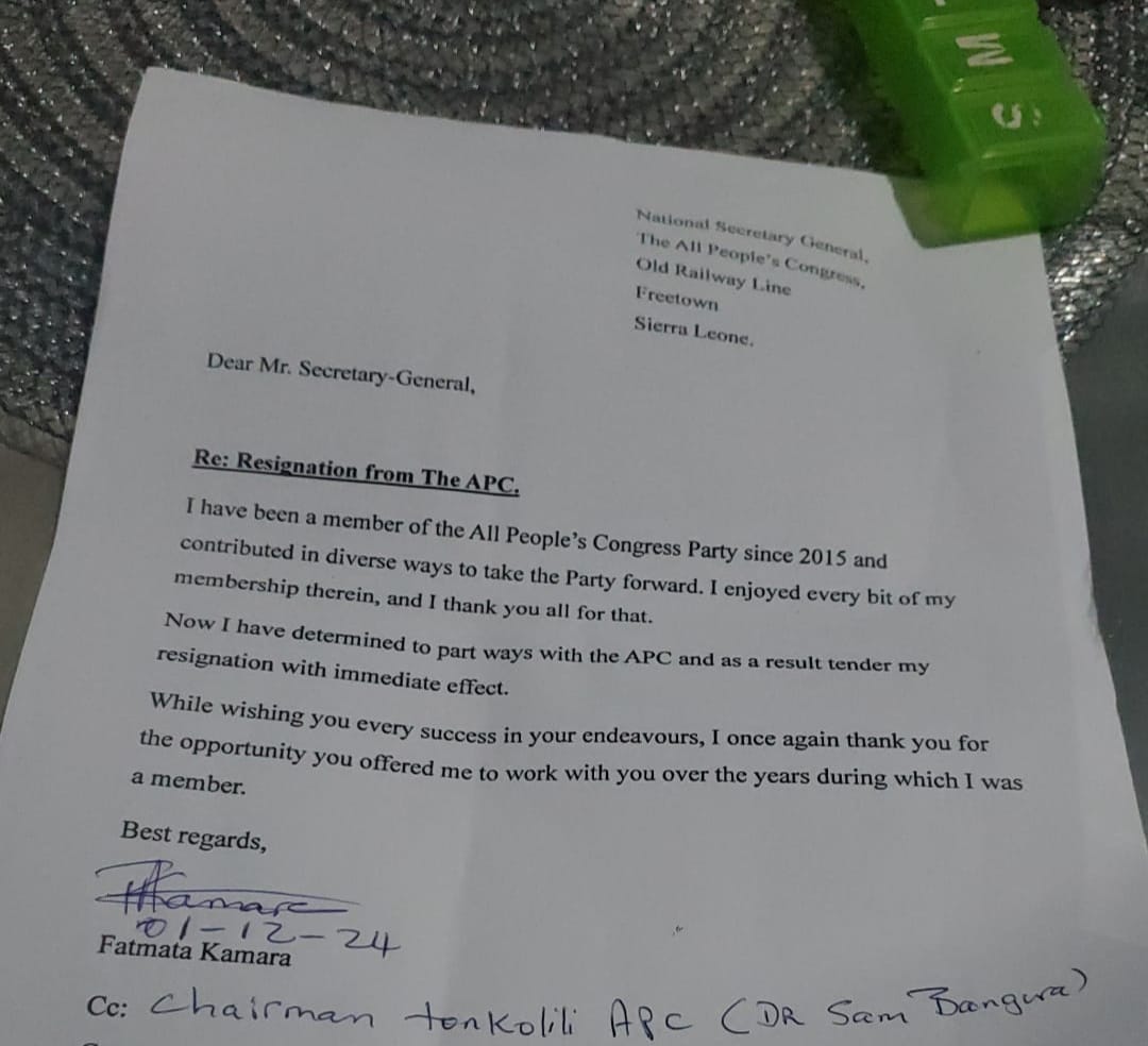 Speculation is rife that Madam Fatmata Kamara’s departure is linked to a growing unease within certain APC factions.