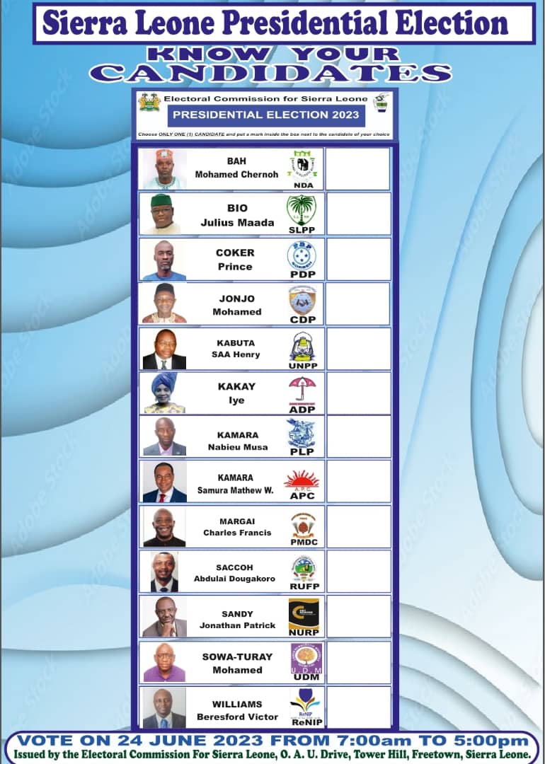 The elections will cover multi-tier candidates from all the different political parties that contested for the elections. The Electoral Commission of Sierra Leone has published the lists of candidates for the elections.