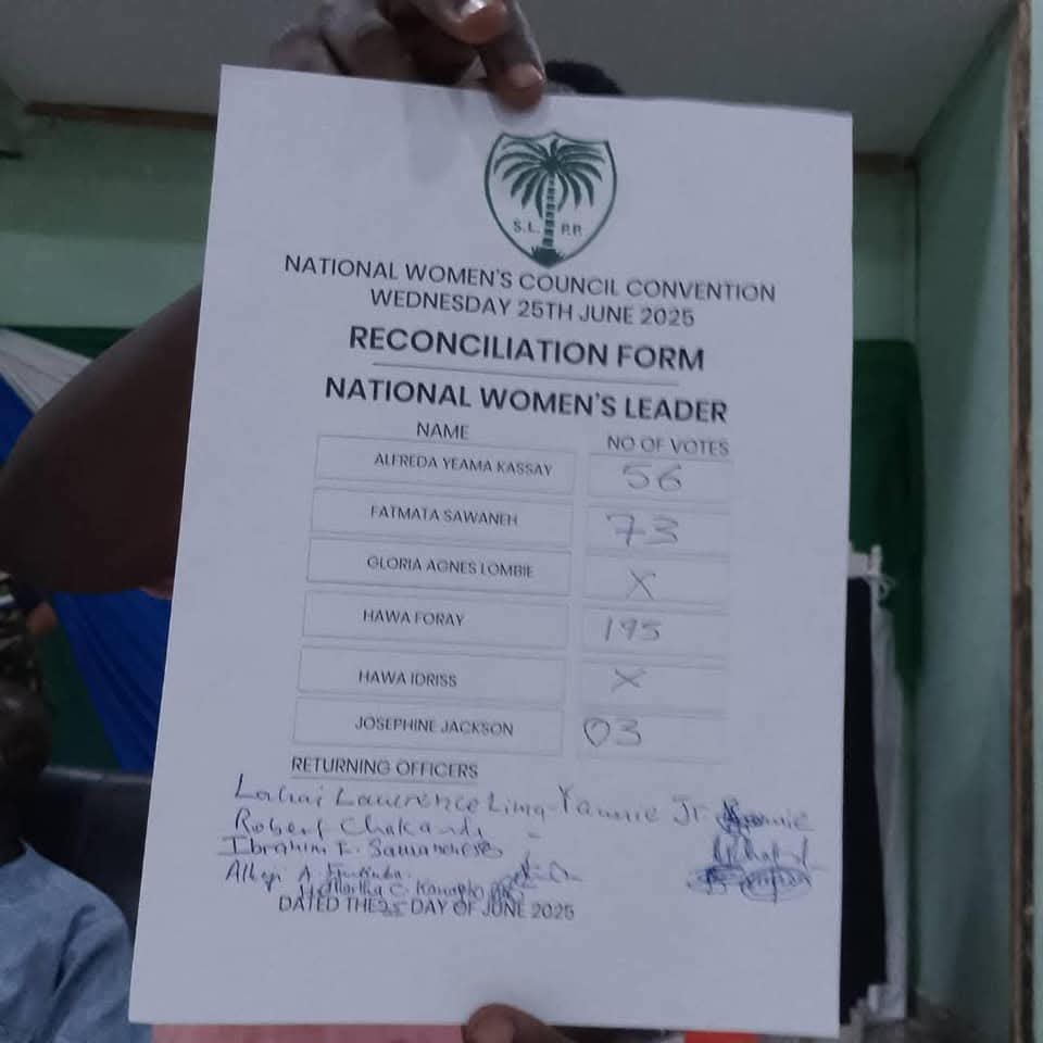 Hawa Foray has been re-elected as the National Women’s Leader of the Sierra Leone People’s Party (SLPP).