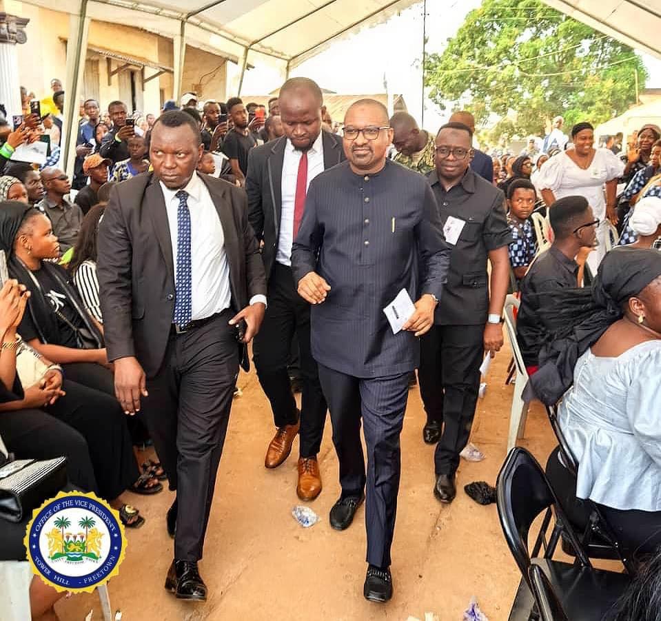 The Vice President of Sierra Leone, Dr. Mohamed Juldeh Jalloh, attended the funeral service of the late Elizabeth Fatmata Blessing Kpakra on Sunday, February 25, 2024, at the New Harvest Central House of Gathering in the Old Railway Quarters of Bo City. During the service, Vice President Jalloh delivered a heartfelt tribute to the deceased.