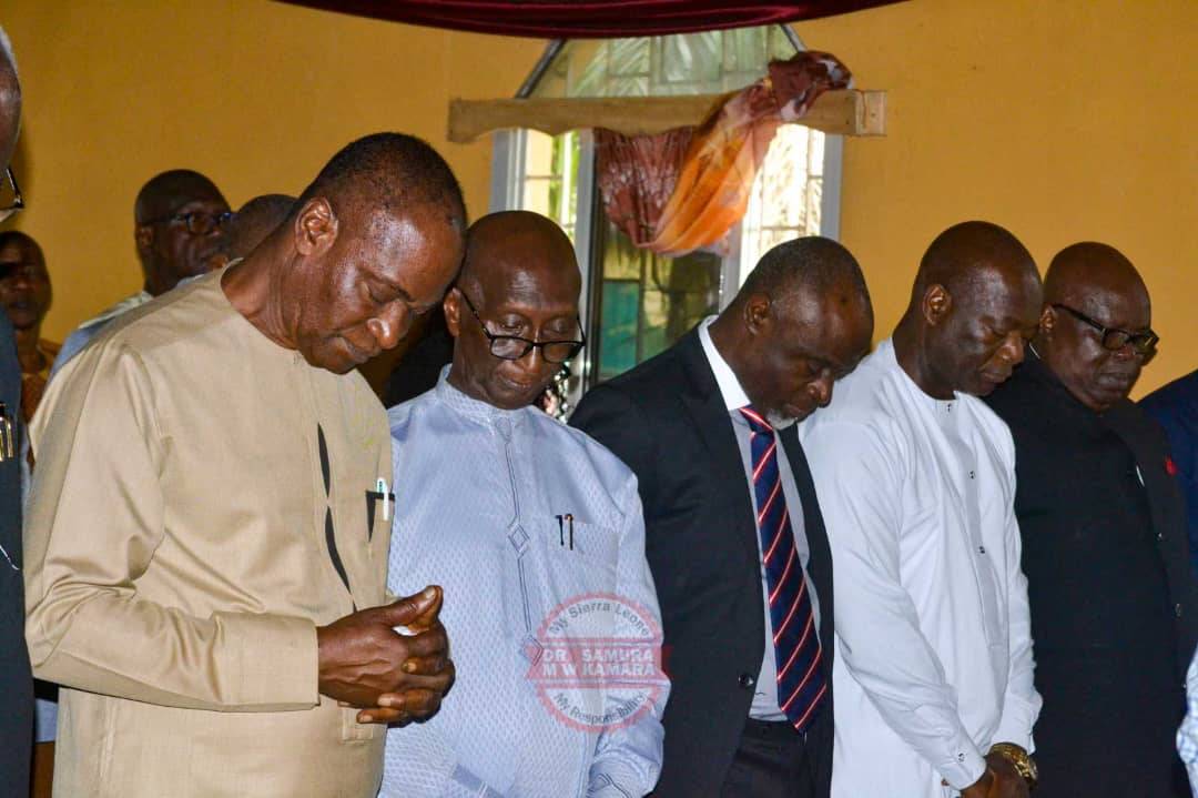 The delegation included the APC’s presidential candidate, Samura Kamara, his running mate, Chernor Bah, and other party leaders. They gathered at the SDA Church Maguraka in the Tonkolili district to commemorate their late colleague, Ernest Jordan Kanu.