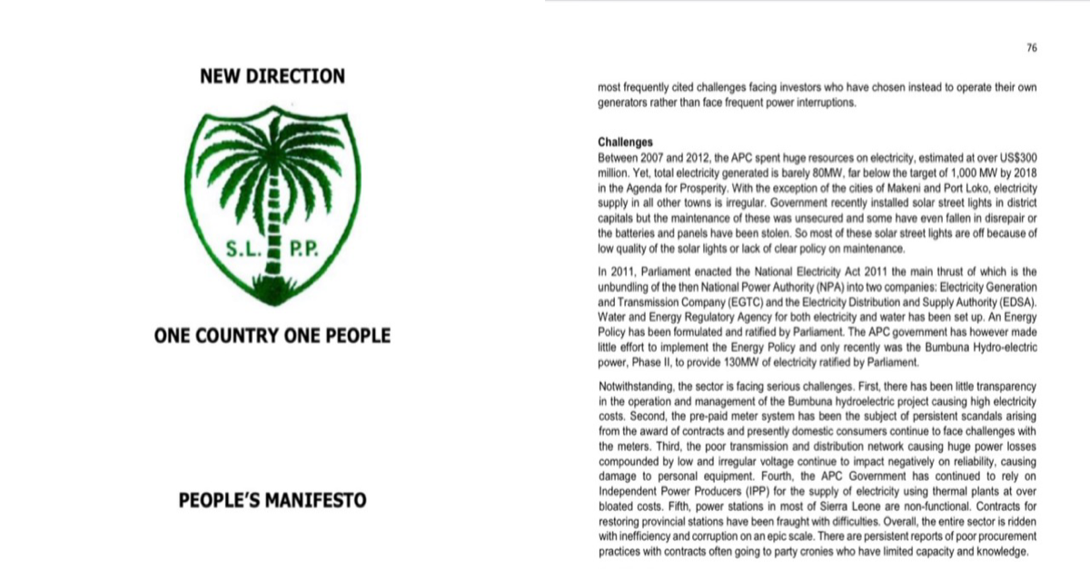 He said, “In their 2018 New Direction People’s Manifesto, the SLPP then opposition party undressed the APC party’s unreliable and irregular supply of electricity with “over-bloated costs” and asserted that the entire sector was “ridden with inefficiency and corruption on an epic scale”. 5 years later, this story is the same and now, even worse with epileptic supply of electricity even in the height of the rainy season.”