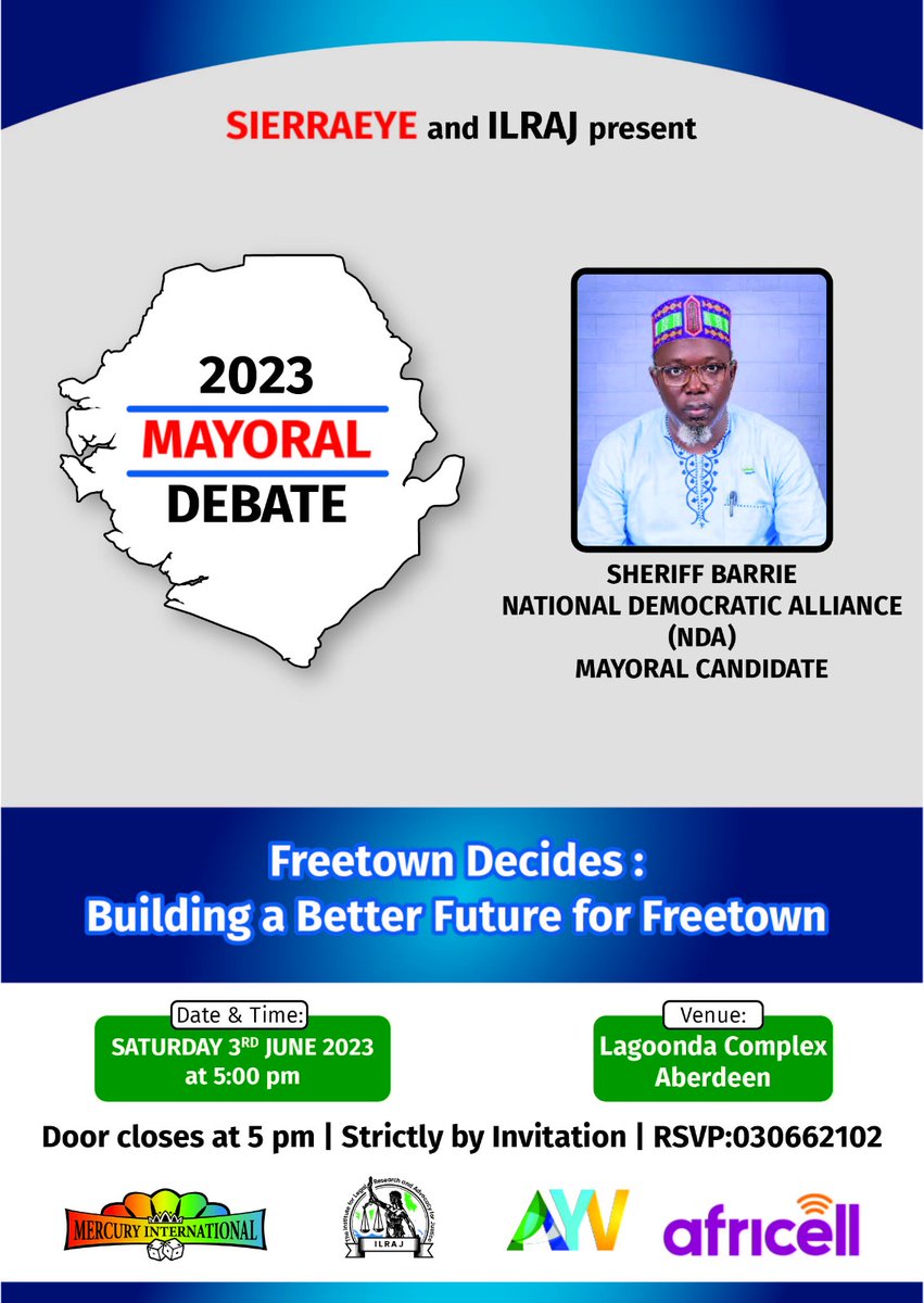 The Institute for Legal Research and Advocacy for Justice (ILRAJ), in collaboration with Sierraeye, has announced that Sheriff Barrie, the mayoral candidate of the National Democratic Alliance (NDA), will on Saturday, June 3rd, 2023, be presenting his case to the voters at the 2023 Mayoral Debate.