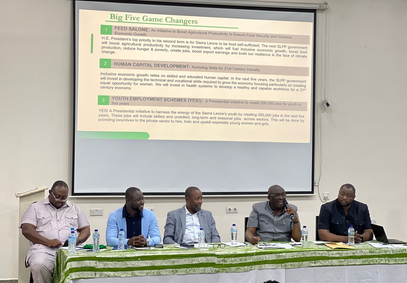 During the event held at the Brookfield Hotel in Freetown, Hon. Saffa presented a comprehensive document divided into five thematic areas. These areas focus on agriculture, human capital development, youth employment schemes, public sector revitalization, and the utilization of technology and infrastructure to drive sustained economic growth.