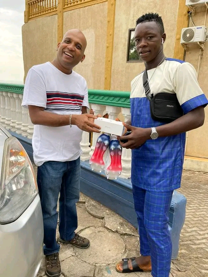 The Chairman of East End Lions Football Club Anthony Navo Jnr has donated a brand new football boots and Iphone to In-form Striker Alie Nzonzi Conteh for his current goal scoring prowess in the Sierra Leone Premier.